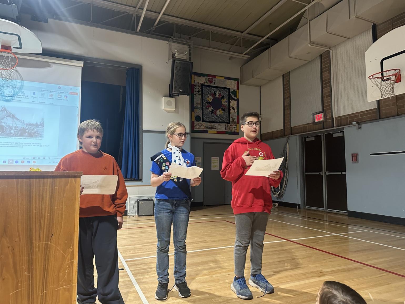 Ms. Omori read Why We Remember, a heartfelt book written and illustrated by students from Graysville School in Manitoba, which explains why November 11 is so significant. Brave students recited the Act of Remembrance and the Commitment to Remember, followed by the solemn proclamation: “We will remember them.” Another group recited In Flanders Fields, reminding us of the enduring legacy of those who served.